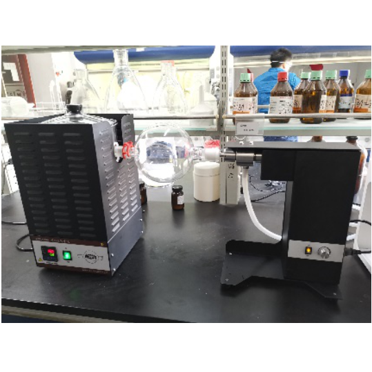 薄膜式蒸發器通過連續旋轉蒸餾瓶,以在加熱燒瓶內表面創建測試材料的薄膜進行工作。大表面面積薄膜促進在溫和條件下快速揮發。單揮發后,測試材料快速凝結在幾厘米遠的收集瓶(通常浸沒在干冰浴中)中。